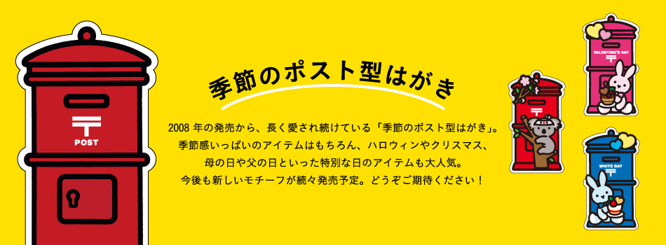 昔懐かしい丸型ポストをはじめ、 郵便に関連するモチーフが文房具に