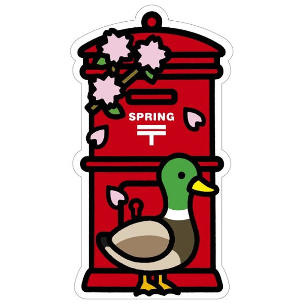 桜咲くポストに、色鮮やかな「まがも」が寄り添う春バージョン。