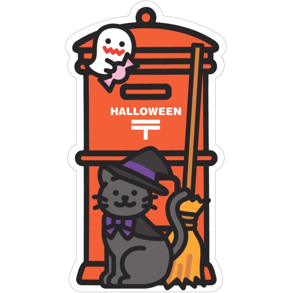 黒猫とお化けが可愛い、ハロウィン限定ポスト型はがき。