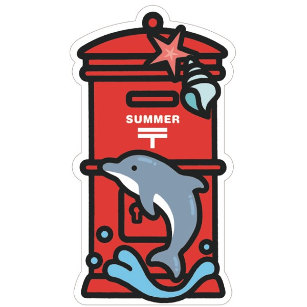 楽しそうに水面をジャンプするイルカが描かれた2024夏のポスト型はがき。